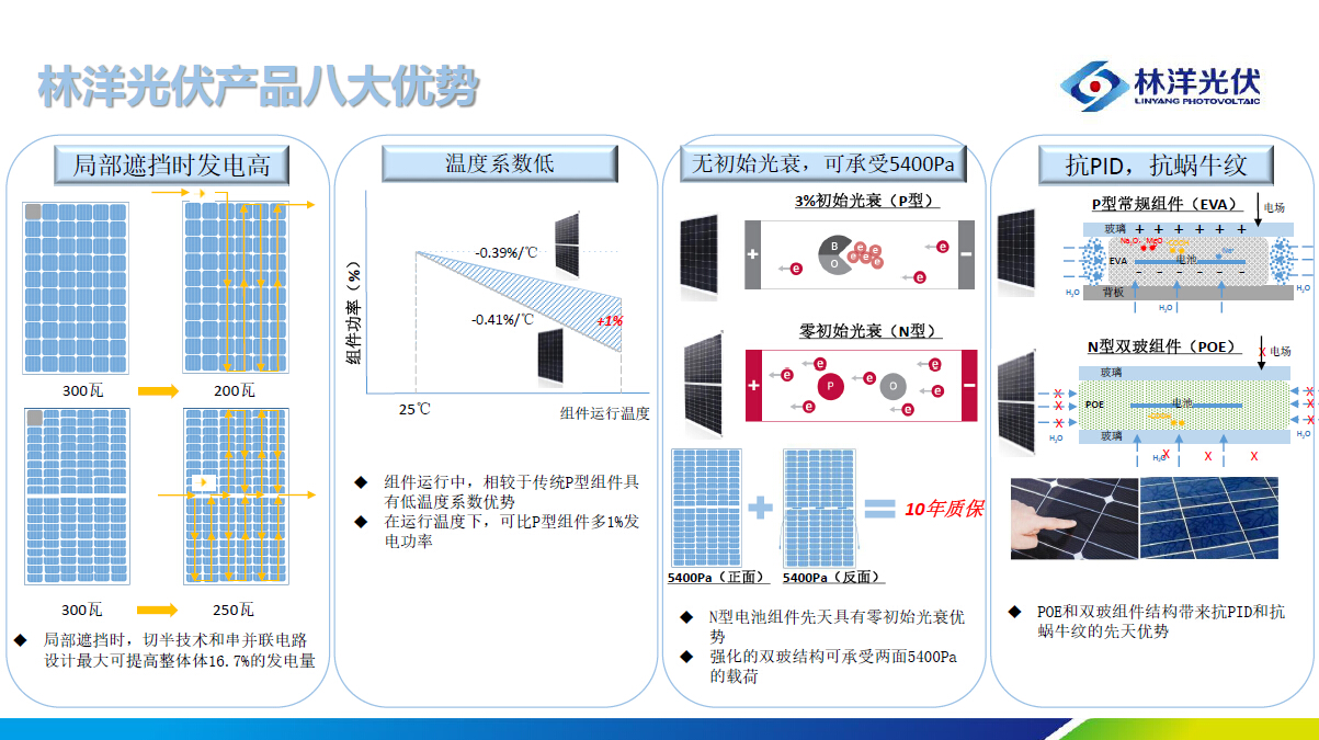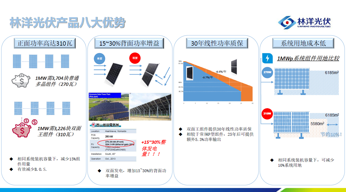 林洋N型双面产品具有八大优势,可用于多种应用场景