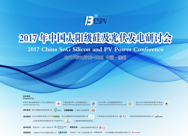 2017年11月16-18日,2017第十三届中国太阳级硅及光伏发电研讨会(13TH CSPV)在江苏省徐州市隆重举行,大会作为我国硅材料及光伏发电方面最重要的学术会议之一,积极推动我国太阳级硅材料和光伏产业可持续发展,帮助国内光伏企业提高核心竞争力,降低市场风险,推动中国太阳能产业持续健康发展。 本次论坛共设立2个主论坛和19个特色分论坛,将发表逾330个技术专题报告,覆盖太阳能光伏产业链,紧扣当前光伏技术与应用热点。