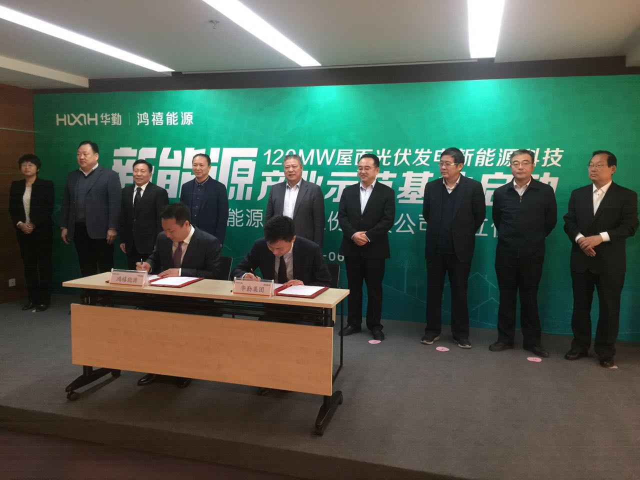 12月6日上午,浙江鸿禧能源有限公司(简称“鸿禧能源”)与华勤橡胶工业集团(简称“华勤集团”)在山东省济宁市兖州区华勤工业园举行签约仪式,宣布合资组建济宁华禧新能源科技股份有限公司,共同建设新能源科技产业示范基地120MW屋面光伏发电项目。