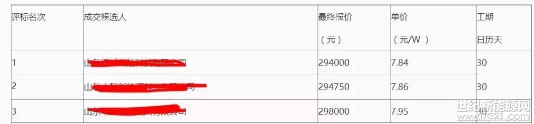 如下图山东地区两个项目,第一张中标价格为7.84元/W,第二个为6.28元/W。