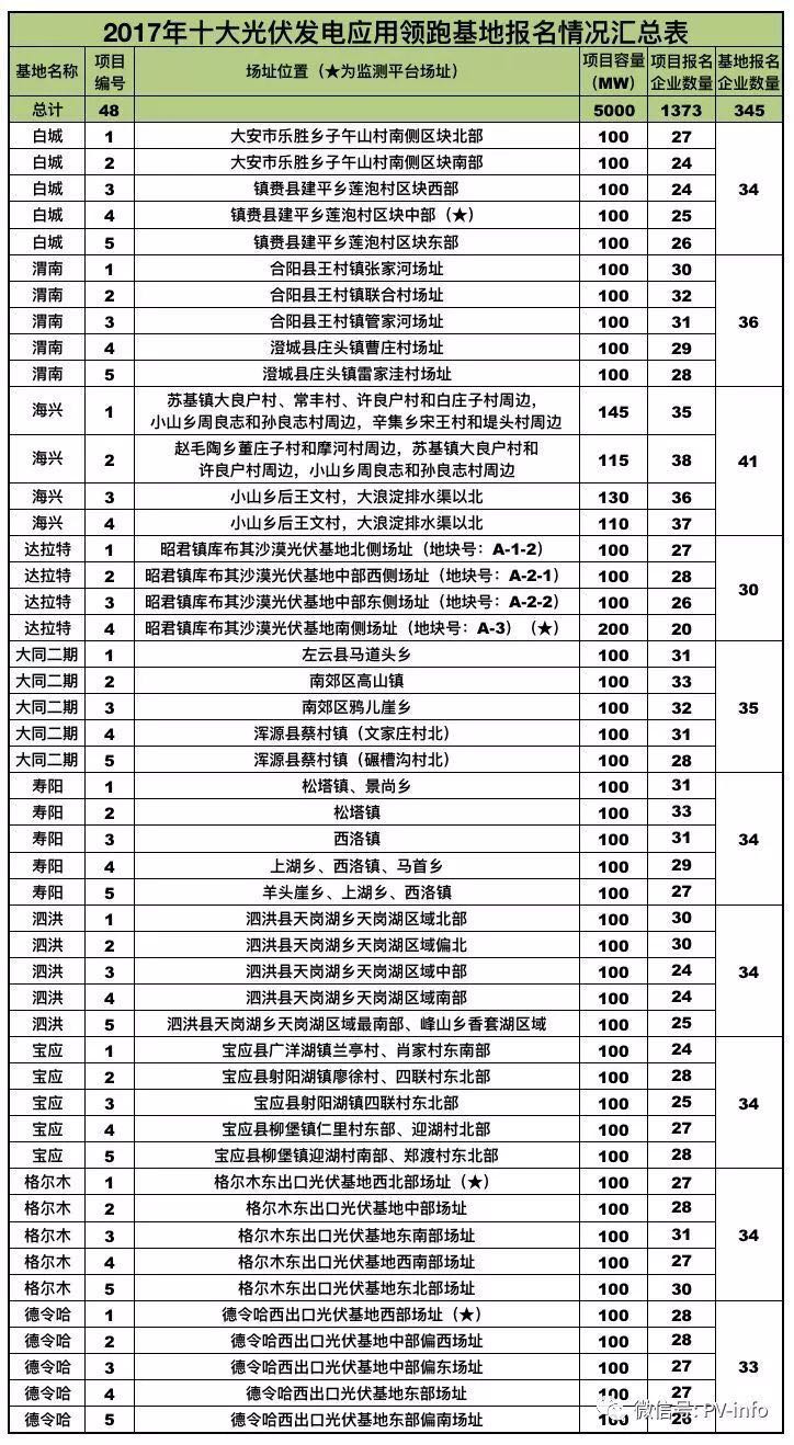 截止2018年2月20日,10个光伏应用领跑者基地发布了总共48个光伏项目的报名企业数量情况。