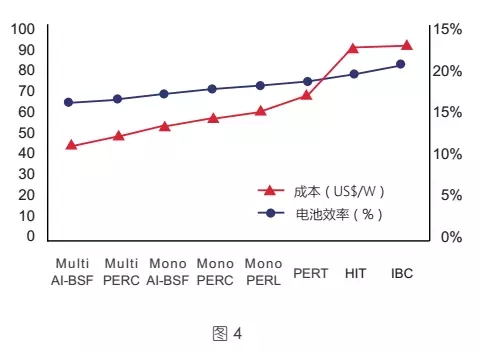 PERC 目前的成本仍比较高,对高效组件生产商来说,设备投资高,制程复杂, 工序增加导致破片率上升的问题制。IBC 电池使用的N 型硅片成本较高,电池制备过程中需要多步掺杂等复杂的工艺,使得其制造成本较高,技术门槛高。HIT 电池工艺要求严格,要获得低界面态的非晶硅/ 晶体硅界面,对工艺环境和操作要求也较高,需要开发适宜的低温封装工艺。其他技术或原材料成本高、或技术不成熟良率无法保证等各种原因导致难以规模化发展。