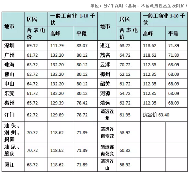 根据《广东省发展改革委关于调整销售电价等有关问题的通知》,从2017年起执行电价如下: