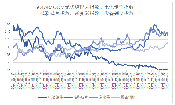 SOLARZOOM光伏经理人指数包括一个全行业指数和两个一级行业指数(中上游制造业指数和下游电站指数)以及六个细分行业指数。六个细分行业指数分别为电池组件指数、硅料硅片指数、逆变器指数、设备辅料指数、EPC指数、运营指数,SOLARZOOM精心选取了光伏产业链这六个环节最具代表性的40家上市公司,覆盖A股、港股和美股3大市场,剔除各上市公司所在市场的大盘涨跌因素,并在调整三地市场估值差异后按市值加权,尽可能准确地还原光伏各细分行业中企业的真实超额收益,反映了电池组件、硅料硅片、逆变器、设备辅料、EPC、运营这六个光伏细分行业各自的景气程度。