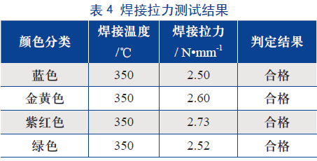 从表4 可以看出,该工艺所制作的彩色多晶硅太阳电池的正电极拉力完全符合要求。