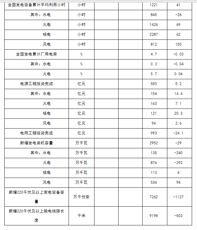 国家能源局发布2019年1-4月份全国电力工业统计数据