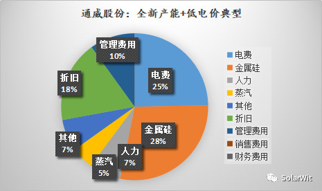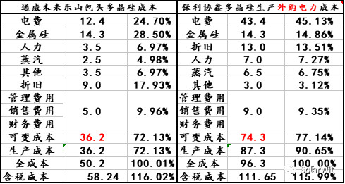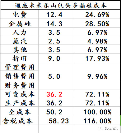 下面是通威股份乐山和包头新建硅料产能的成本结构:
