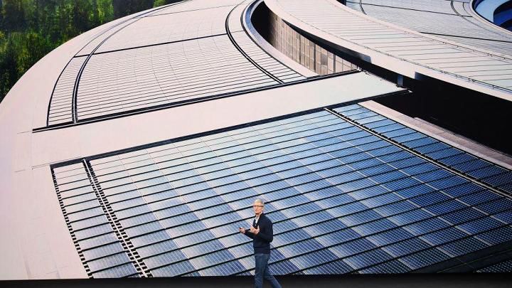 苹果CEO库克在今年年初表示公司实现100%可再生能源驱动,公司的“飞碟”新总部20MW光伏系统也让人印象深刻。