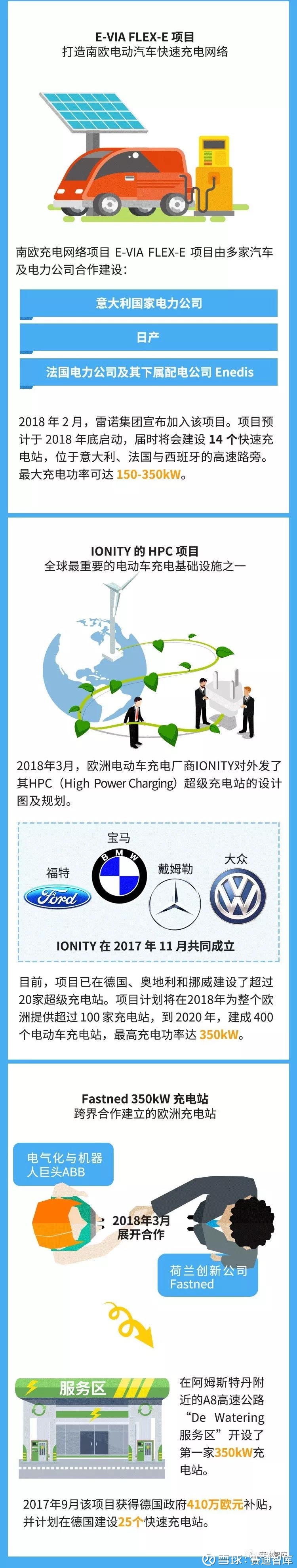 欧洲已规划建设5 个超高速充电网络项目(ultra-fast)