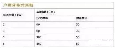 首先判断屋顶有多少可利用面积,因为可利用面积直接决定了光伏系统的装机容量。给个参考表: