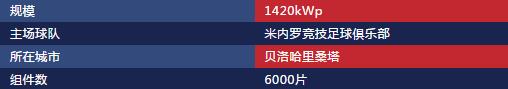 场馆简介:伯南布哥体育场位于巴西累西腓,为该州首个光伏电站项目。采用了由中国英利生产的太阳能光伏发电系统,总装机容量达1MW,年发电量达150万千瓦时,相当于6000名巴西人全年的用电量,可满足体育场30%的用电需求。