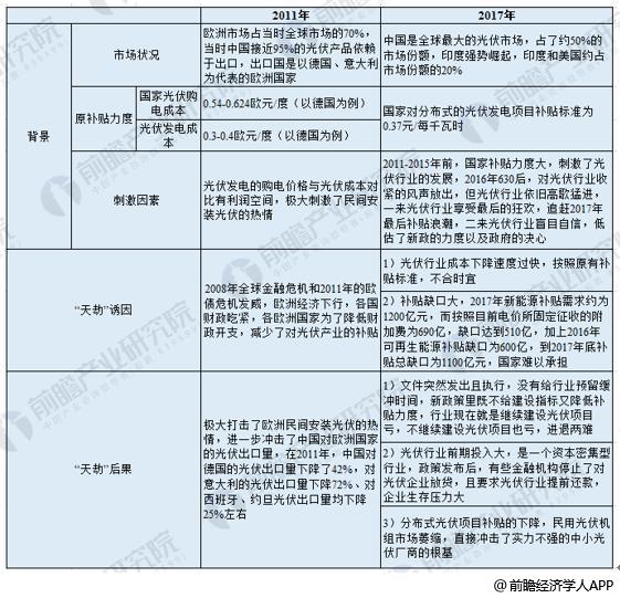 2011年,光伏行业在欧洲很“热”,光伏市场70%的世界份额由欧洲贡献。热度的源头是欧洲各国对光伏行业的大力发展,助燃剂是政府补贴。政府补贴价格与光伏发电成本之间的价差极大地激发了欧洲民间对光伏发电的热情,也刺激了中国光伏行业出口,当年中国光伏行业接近95%的产品出口到了国外,大部分销往欧洲。
