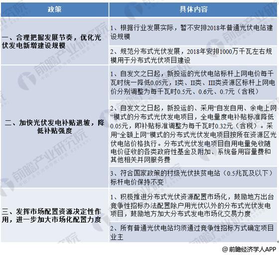 新政中两条新规引发了业内震动——其一是合理把控光伏发电新增规模,国家在2018年仅给出了1000万千瓦的分布式光伏建设可用指标,同时不安排普通光伏电站建设规模;其二是降低光伏补贴力度,其中采用“全额上网”模式的光伏项目,电价统一降低0.05元/每千瓦时;而“自发自用,余额上网”模式下的分布式光伏项目,补贴标准则降低了0.05元/每千瓦时,调整为0.32元/每千瓦时(含税)。