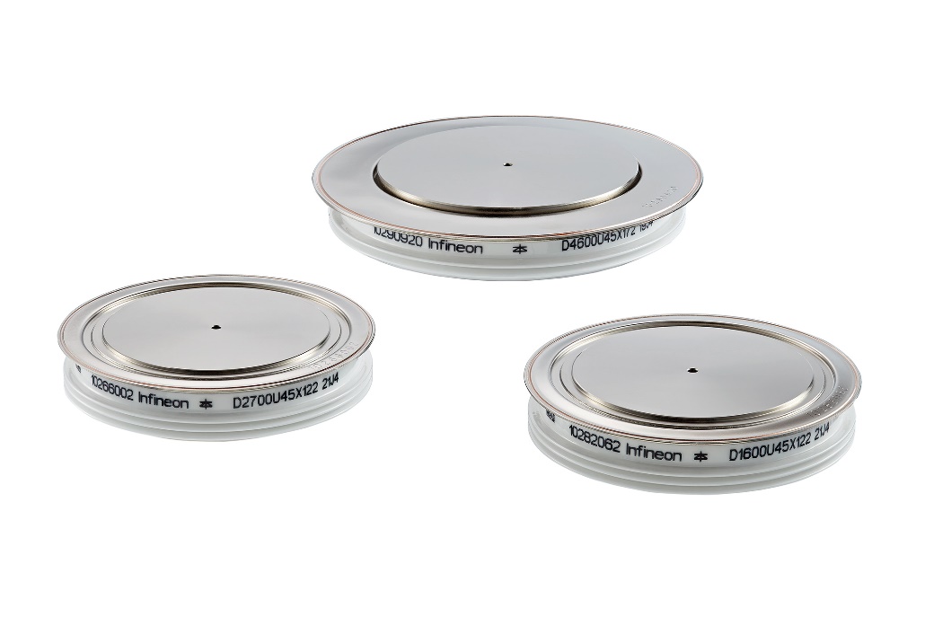压装式超软IGBT续流二极管具备4.5 kV阻断电压。该二极管有三种不同的封装直径:D1600U45X122、D2700U45X122和D4600U45X172。关于英飞凌Prime Soft的更多信息请访问:www.infineon.com/primesoft。