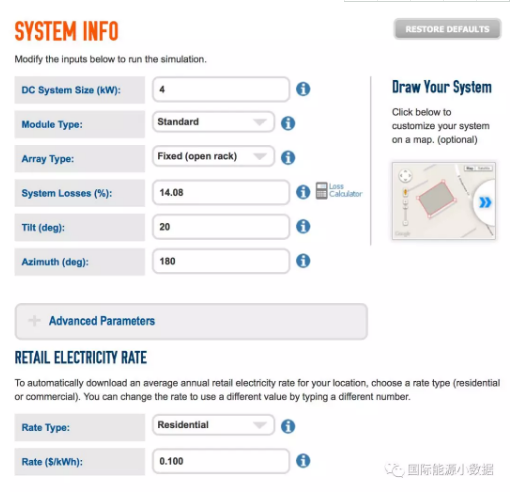 美国国家可再生能源实验室(NREL)推出了网上光伏计算器(PVWattsCalculator),可针对世界任何地方计算安装屋顶光伏的经济收益。