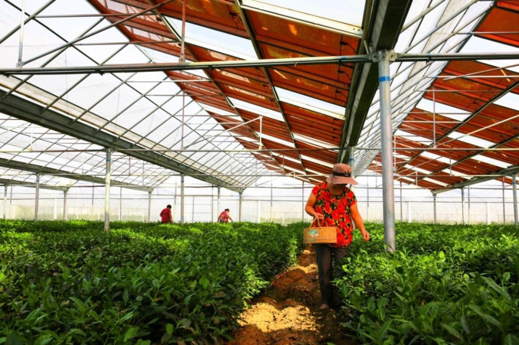 丰收的季节,华盛绿能园区工人在采摘茶叶