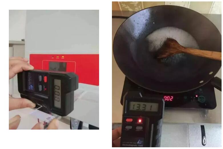 如下图实测,在距离10cm左右时,逆变器的辐射值已经是0了,而电磁炉的辐射值为13.31。