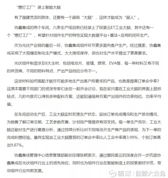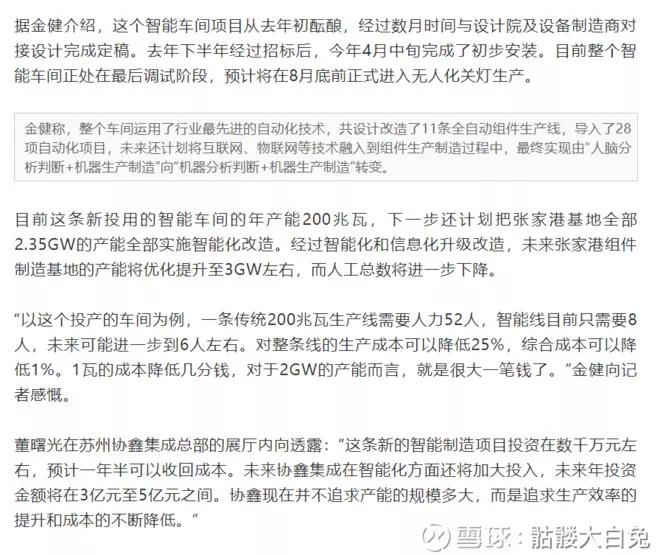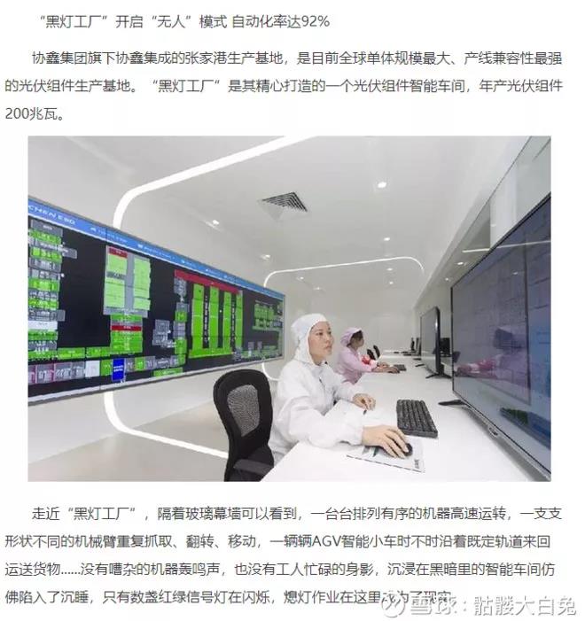 目前所有光伏企业里,我了解到的,协鑫集成的这个熄灯工厂,水平应该是最先进的,其他光伏企业都还比较少往智能制造发现发展。