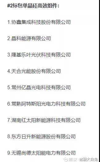 由于协鑫集成在常规多晶和高效单晶,这两个标段都获得了顺位第一。