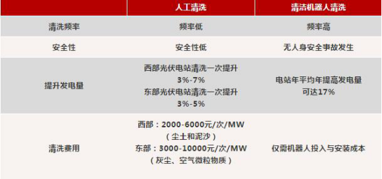 与人工清洗对比,C系列集中式光伏无水清洁机器人在各个方面取得碾压性胜利,清洗成本清晰可见,清洗效果可控、清洗成本可控。