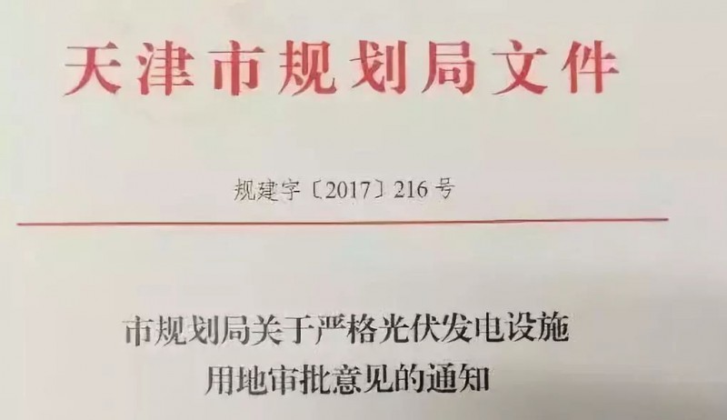 2017年9月初,天津市规划局《关于严格光伏发电设施用地审批意见的通知》