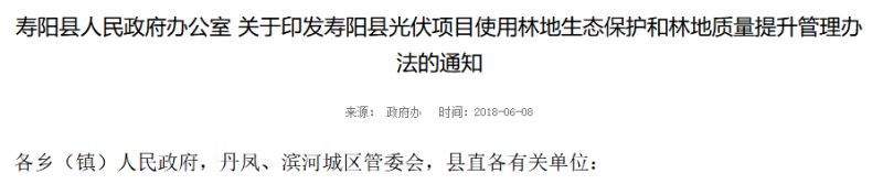 山西2018年6月5日,寿阳县人民政府《光伏项目使用林地生态保护和林地质量提升管理办法》