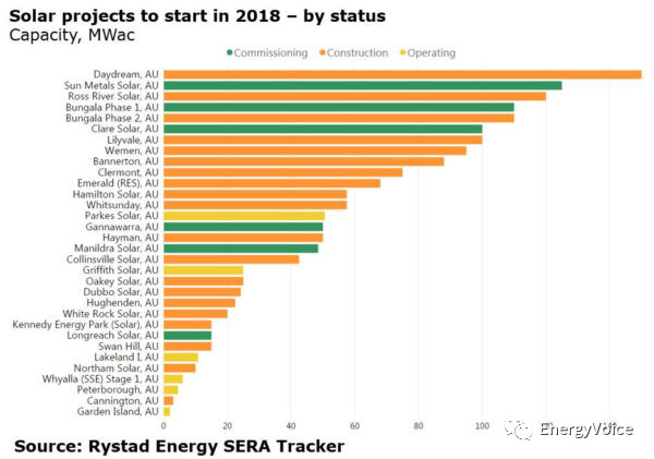 大型地面项目:下图展示了有22个超过20MW的光伏项目于2018年启动,大多正在建设中。