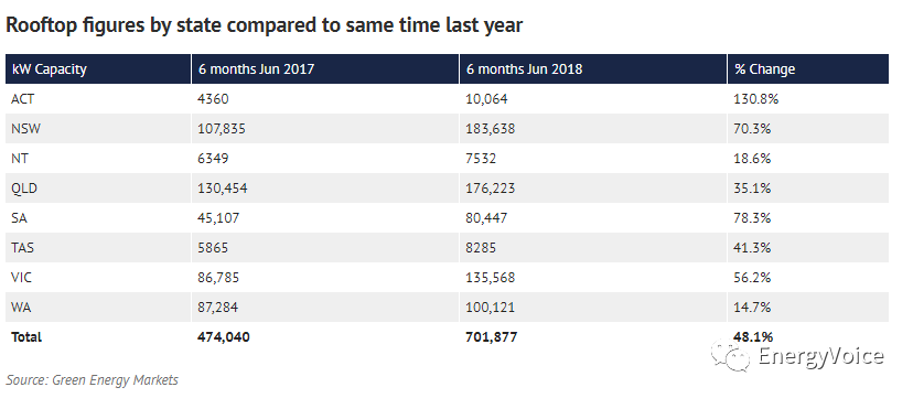 全国层面来说,联邦政府没有在NEG中就装光伏机量目标给出详细数字,彭博社根据2030年前减排28%的目标计算出,只需新增1.5GW可再生能源容量即可达成。