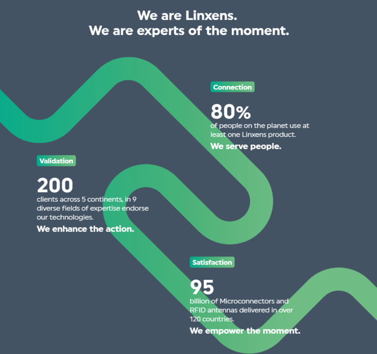 Linxens 起源于20世纪80年代初,当时三位极富才华和创造性的工程师接受挑战,要设计出一款超薄的柔性连接器,使首个商业智能卡能够与电子阅读器进行连接和通信。2000年,十几位心怀创新理念的有志之士创立了Smartrac SIT,并使其迅速成为RFID产品和物联网解决方案的基准。