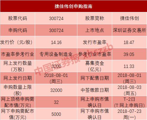 今天(8月1日)将迎来本周唯一的一只新股申购——创业板的捷佳伟创,其发行价为14.16元/股,顶格申购需要32万元深市市值。