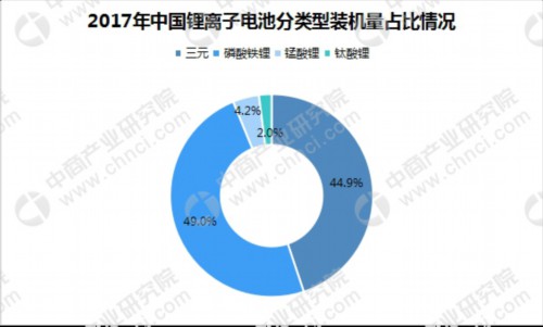 具体来看,2017年锂离子电池装机量为369.1亿瓦时,占动力电池装机量的99.6%,同比增长21%。其中,三元:165.6亿瓦时,占锂离子电池装机量的44.9%;磷酸铁锂:180.7亿瓦时,占比49%;锰酸锂:15.4亿瓦时,占比4.2%;钛酸锂:7.4亿瓦时,占比2%。2017年,中国再次成为全球最大的动力电池应用市场。