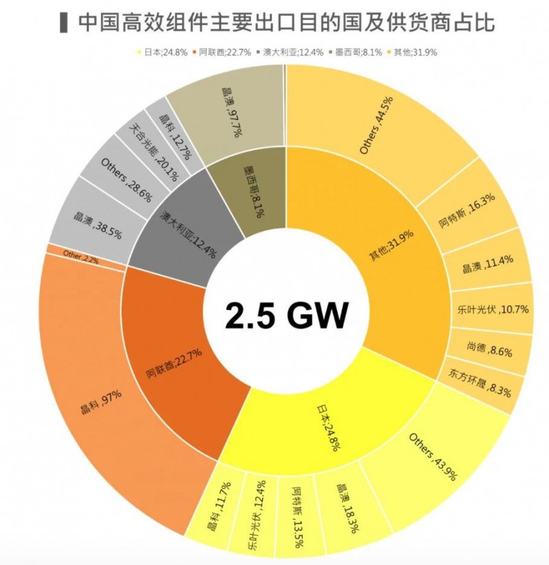 2018H1高效组件及特殊组件出口占比提升至15.8%