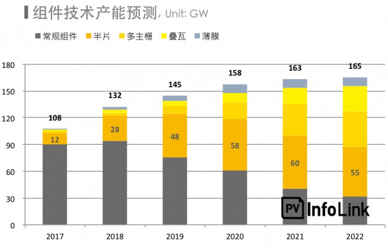 (4) 在N型产品投资、设备成本仍高的情况下,PERC俨然已成为高效组件标配工艺,然而在电池效率提升渐入瓶颈的情况下,许多厂商开始由组件端着手,导入如半片、MBB及叠瓦等组件技术,至去年下半年;不少厂商已具备各种技术的量产能力,且有实际出货实例。