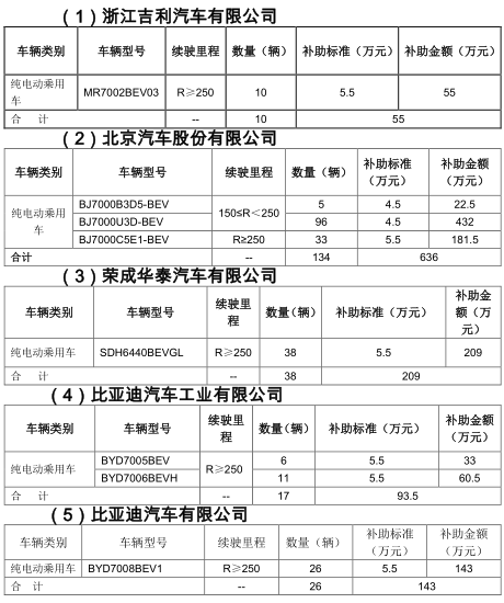 近日北京市经信委拟拨付2018年第四批新能源汽车补贴,共涉及吉利汽车、北京汽车股份、荣成华泰以及比亚迪汽车工业和比亚迪5家公司新能源汽车225辆,拟拨付资金1136.5万元。