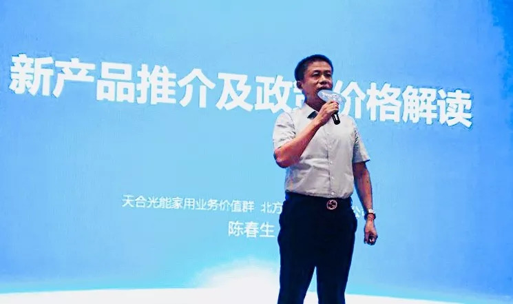 在济南会场,天合光能家用业务价值群北方区域兼潍坊分公司总经理陈春生作了新产品及政策解读,
