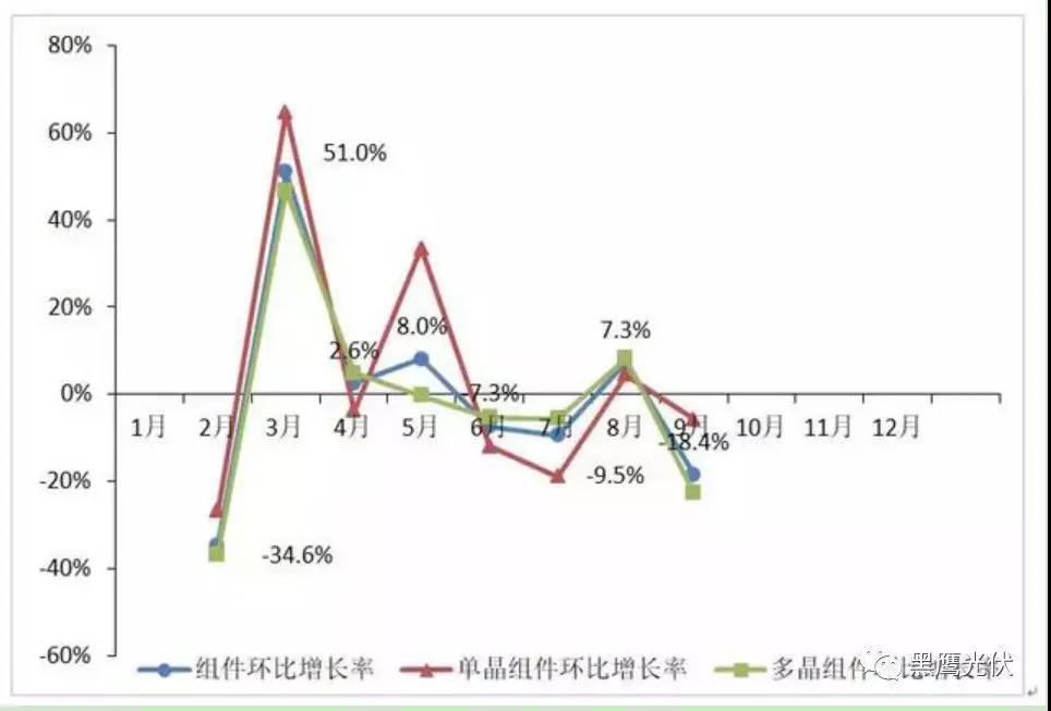 此外,从增长率方面分析,我们从下面两张增长趋势图中可以看到,单晶与多晶环比增幅存在一定差异,但大的趋势基本吻合。