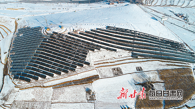 雪后的康乐县五户乡朱家村光伏电站十分壮观。康乐县把村级光伏扶贫作为产业扶贫的重要抓手,在全县范围内大力实施光伏扶贫村级电站建设,让贫困群众共享“阳光财富”,走出了一条光伏产业助推脱贫攻坚的新路子。