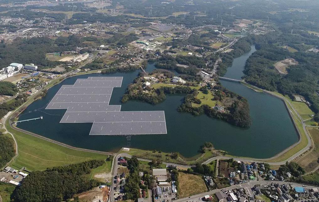 该电站是日本最大规模的水上电站,组件铺排超过5万块,覆盖面积达18公顷,每小时发电超过1000千瓦电力。