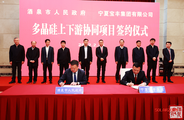 为积极响应国家“碳中和、碳达峰”重大战略,抢抓政策机遇和发展红利,2月25日下午,酒泉市与宁夏宝丰集团在兰州签订《多晶硅上下游协同项目投资合作协议》。
