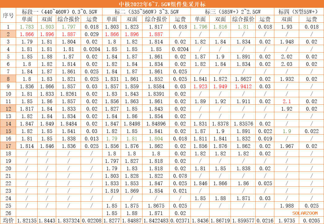 根据开标结果来看,本次报价有单双面组件的分别报价、综合报价以及运费,是近期以来报价较为明确且精确的一次开标。从价格方面来看,本次报价的最低价为1.783元/瓦,最高报价则出自N型标段的2.1元/瓦。值得注意的是,某企业N型产品最低报价为1.9元/瓦。