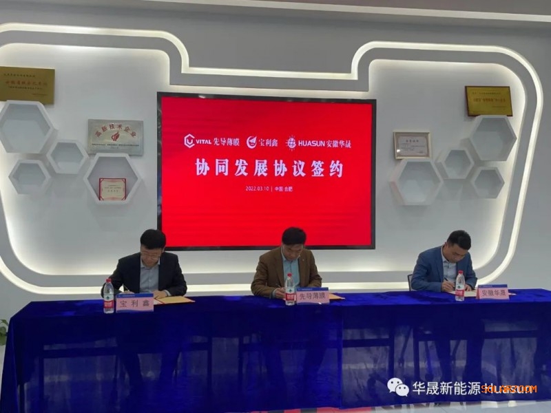 仪式上,三方相关负责人分别介绍了各自公司在异质结领域研发、生产、应用等方面的情况,并签署了《异质结光伏组件推广战略合作协议》。根据协议约定,宝利鑫所投资的项目将优先选用华晟品牌的异质结组件,2022年采购量约40MW。