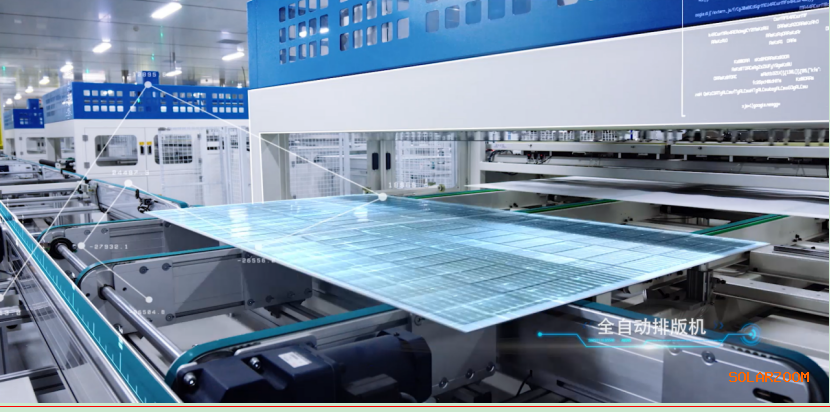 在组件环节,晶澳生产基地全部使用全自动双轨高速串焊机、双腔层压机全自动装框一体机和拥有工业级电脑智能控制多维度机械手的自动排版机等先进设备。在此基础上,晶澳的组件生产线得以具备较高的适应性,可实现生产全过程的智能联动,一键完成产品规格更换。