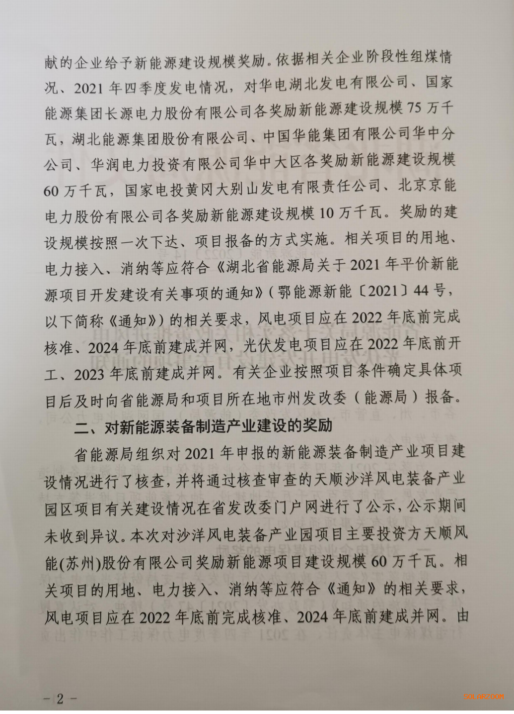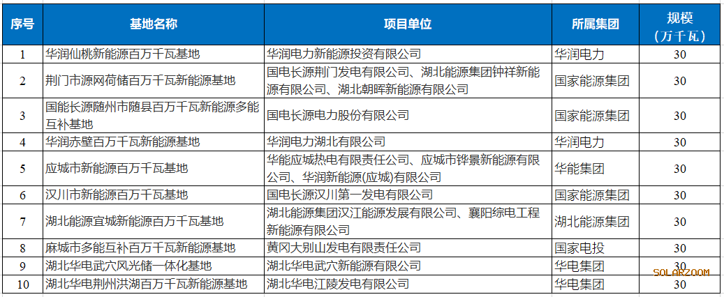 表:湖北省新一批风电、光伏项目指标分配情况。