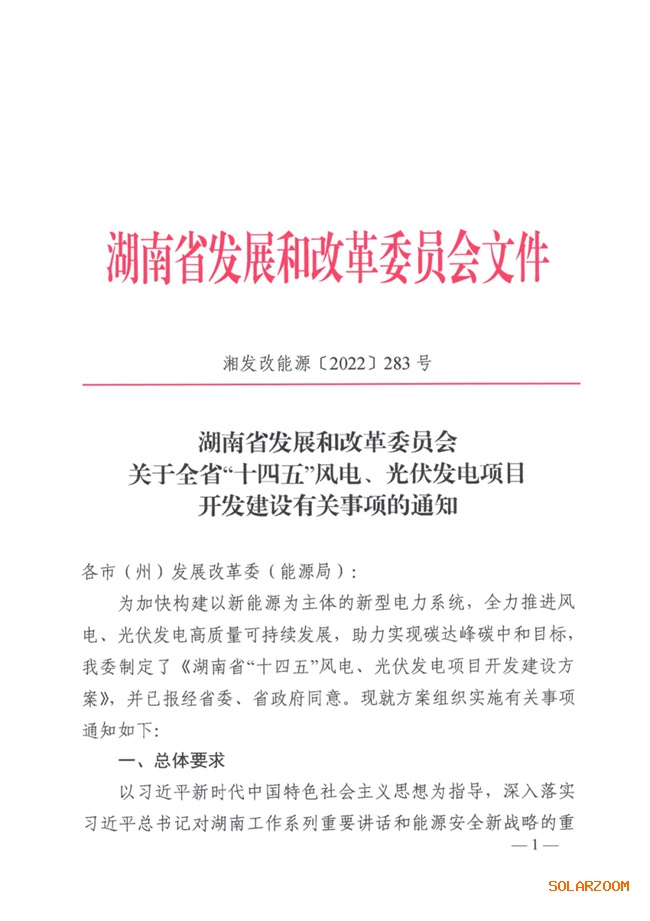 4月14日,湖南发改委印发《关于全省“十四五”风电、光伏发电项目开发建设有关事项的通知》,力争做到在“十四五”期间具备开发建设条件的风电、集中式光伏发电项目应开尽开。