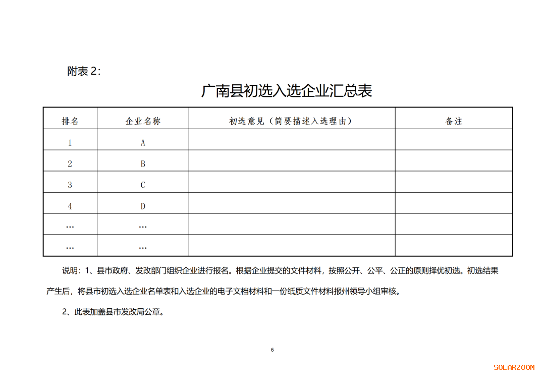 (三)报名结束后,广南县可再生能源协调工作领导小组进行资格审查,县初审通过后将初审报名结果报州领导小组审核,待州领导小组审定同意后,由第三方组织有关专家采用综合评分法进行优选。具体时间另行通知。