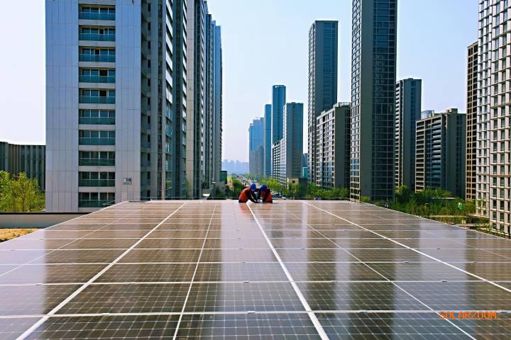 5月5日杭州亚运村“万人食堂”屋顶光伏正式建设完工,意味着接下来每年可以生产绿电约19万千瓦时,相当于减少二氧化碳排放量107吨,约5000棵树的减排量。