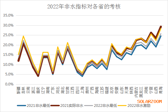下图是2022年各省的非水指标情况。以上海为界,上海能保持2021年的数字就能完成2022年最低考核,上海之前的一直到新疆的省份,压力都会很大。