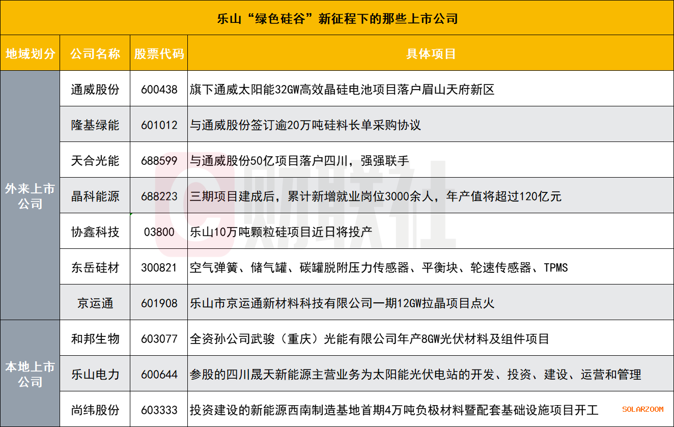 自“中国绿色硅谷”建设驶上快车道以来,具体哪些外来上市光伏头部企业选择直接或参股方式落户了乐山?
