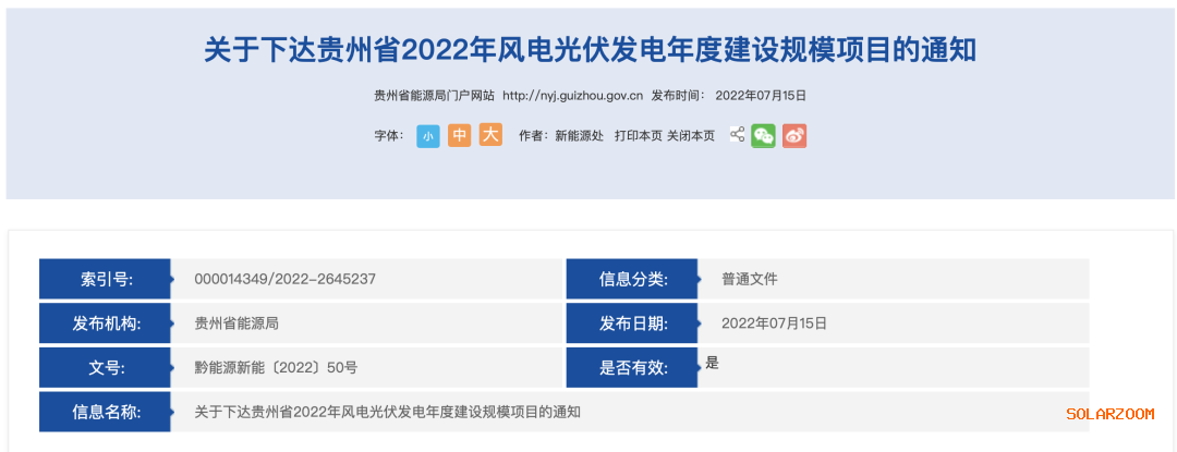 关于下达贵州省2022年风电光伏发电年度建设规模项目的通知