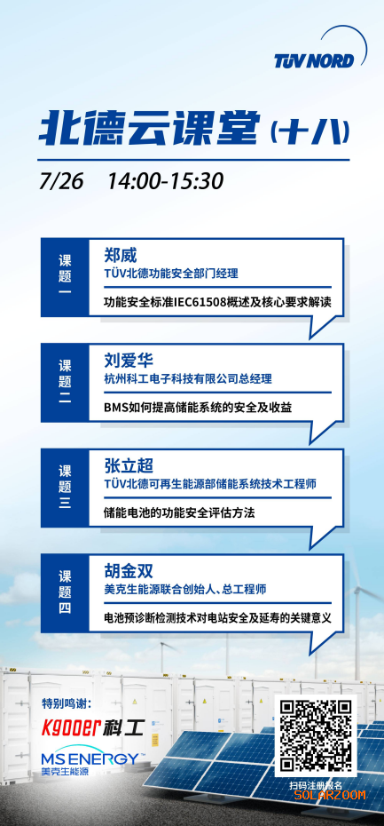 作为专业的第三方检测认证机构,TÜV北德时刻保持专业和严谨的态度,通过专业的技术手段,确保产品、系统的质量安全。本期北德云课堂将聚焦储能产品安全及功能安全,分享相关策略、经验和解决方案,以避免相关风险和事故、保障安全。